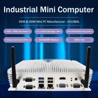 Eglobal Industrial Fanless Mini PC with Intel I5-6360u, I7 10510U, 2 LANs, 2 COM, 24/7 Working, Micro Computer, Linux, 4G SIM, WIFI, VGA, HDMI